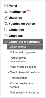 Lo primero: hay que asegurarse de que en el perfil correspondiente hemos marcado que se trata de un sitio de comercio electrónico. De lo contrario, los informes en cuestión no aparecerán en el menú lateral derecho.