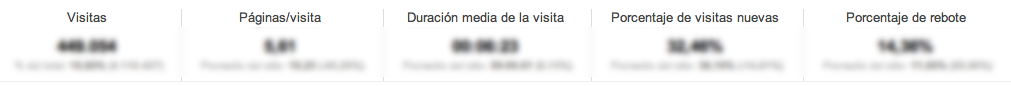 La comparación de estos números con los correspondientes a la media del sitio nos dice de un vistazo si la experiencia de los usuarios «móviles» es mejor o peor que la del resto.