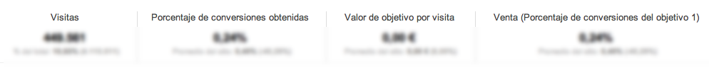 - Porcentaje de conversiones de los objetivos dados de alta en el perfil