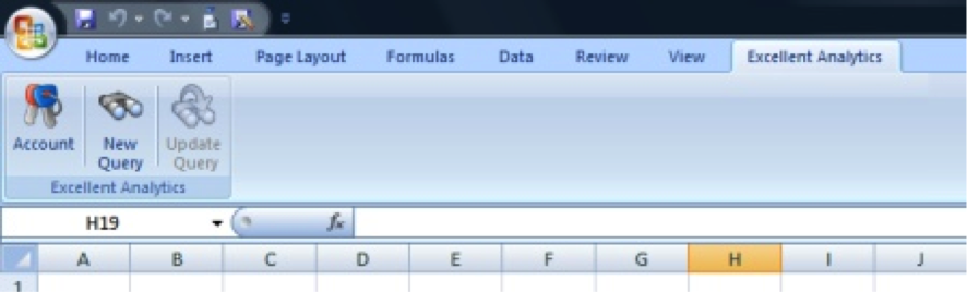 La instalación del Pluggin es realmente sencilla: basta con descargarlo y ejecutarlo. Cuando se abre Excel, aparece una nueva pestaña en el menú superior: Excellent Analytics.