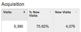 Adquisición: Visitas, % de Visitas Nuevas y Nuevas Visitas (el número absoluto). Nótese que aquí hasta nos libran de tener que hacer una operación trivial, que es la de calcular el porcentaje de visitas nuevas a partir de los otros dos…