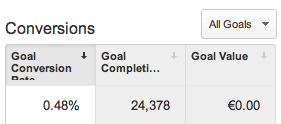Si seleccionamos los otros objetivos, las métricas son Porcentaje de Conversión del Objetivo, Valor del Objetivo, y Número de Consecuciones del Objetivo.
